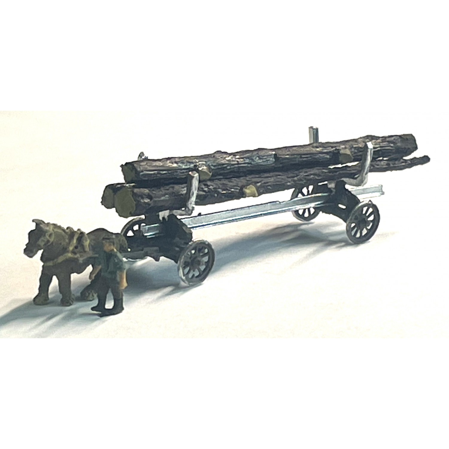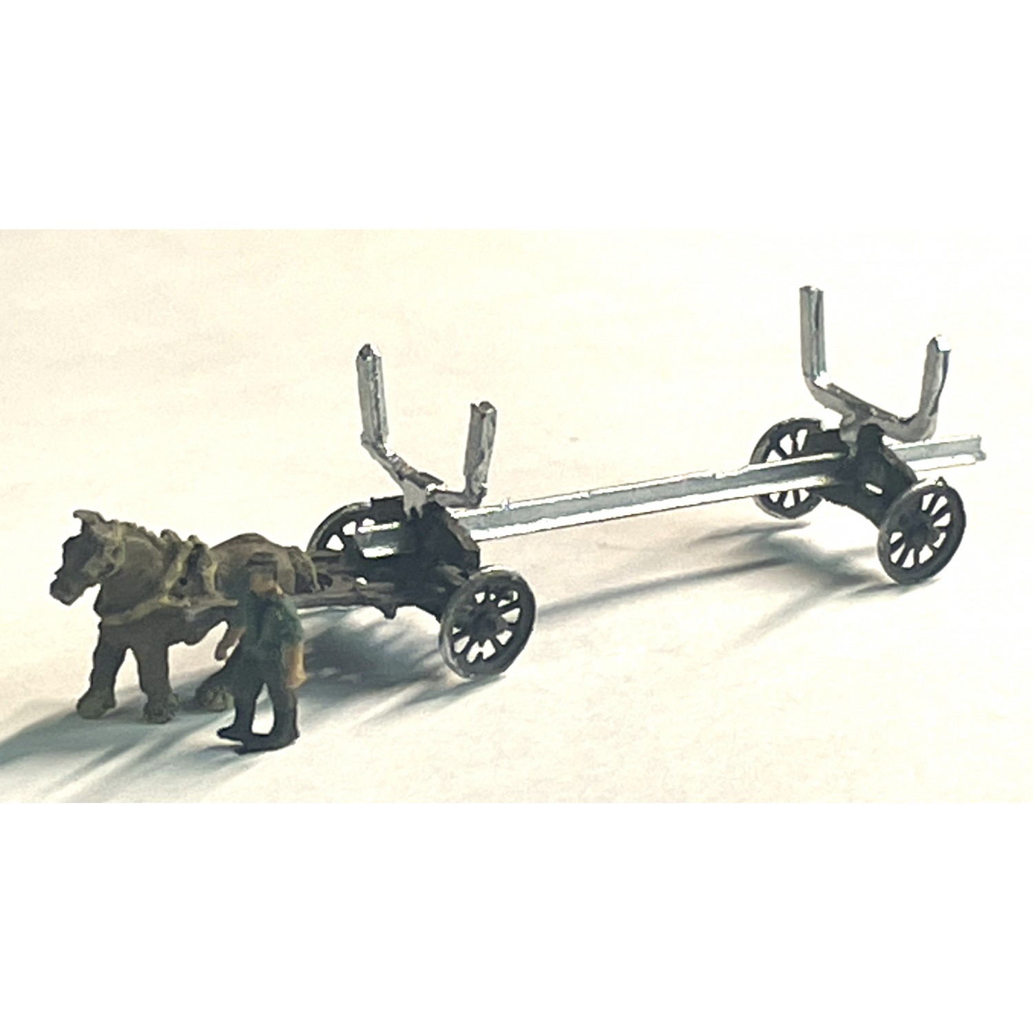 Horse Drawn Log/Pole Carrier with figure. Picture one.